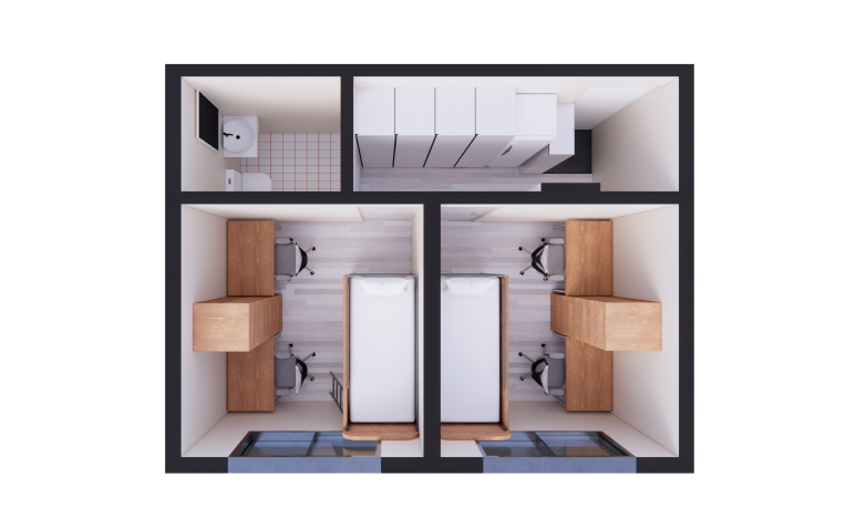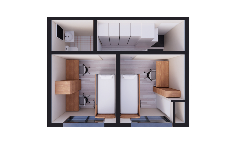 学生宿舍房间布置情况 * *男生宿舍:2楼~6楼 / 女生宿舍:7楼~9楼